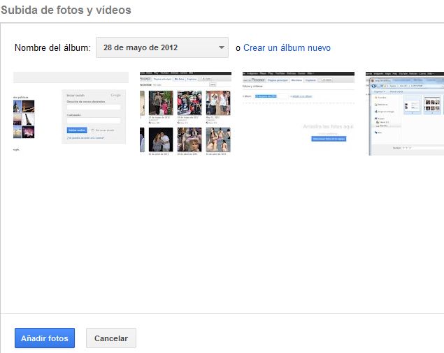 Si usas Chrome, no hay problema, el navegador te redirecciona al álbum picasa donde has subido las fotos. Si usas firefox o explorer, tienes que dar clic en "fotos"; te sale una página así: